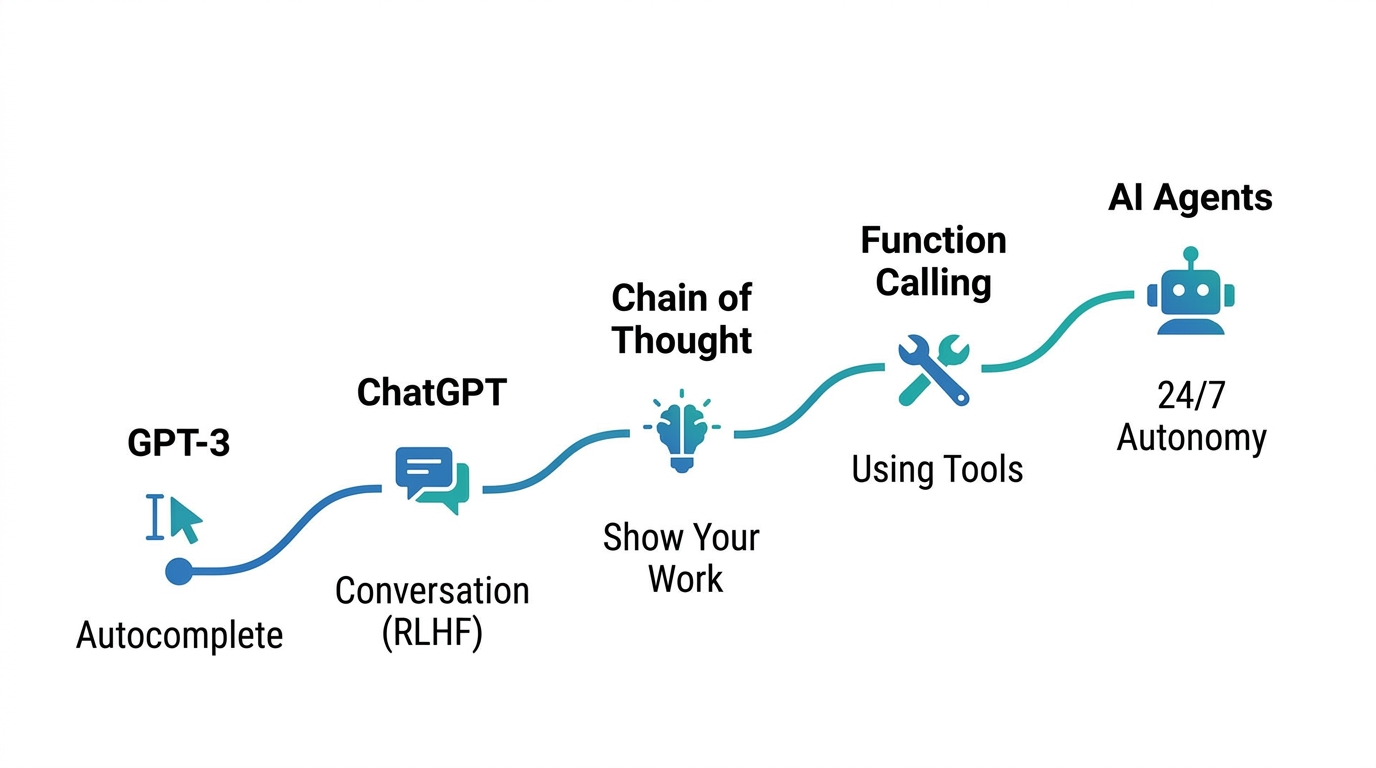 That said, even if the hype is overblown, the technical progress is real. We went from a basic autocomplete model to a 24/7 autonomous agent in roughly two to three years. That is genuinely impressive. So instead of feeding into the hype, I want to break down how we actually got here step by step.